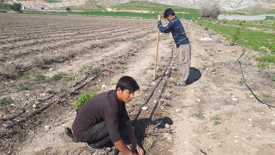 آبیاری مزرعه به لیمو به صورت سنتی